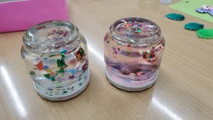 材料:保冷剤、水、ビーズやスパンコール、ビン