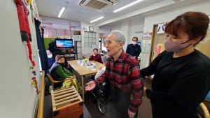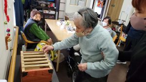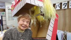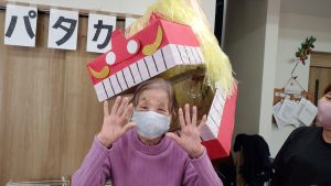 お参りの後はこちらもスタッフ手作りの獅子舞に頭を嚙んで